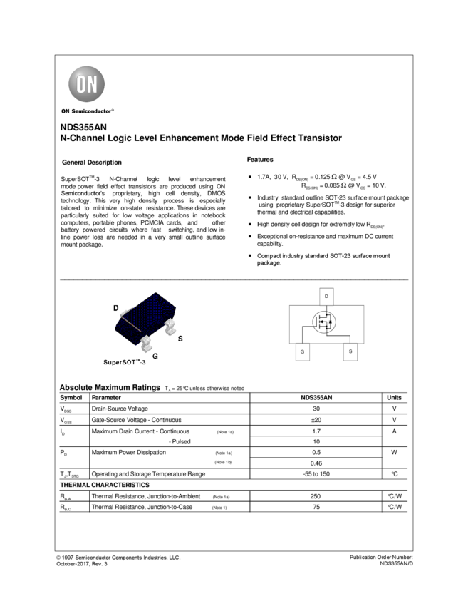 NDS355AN N-Channel Logic Level Enhancement Mode Field Effect Transistor
