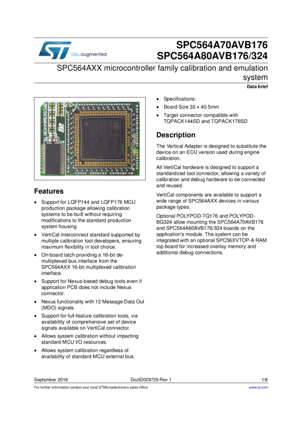 SPC564A70AVB176 VertiCal base board for A-Line 2M in LQFP176 target package