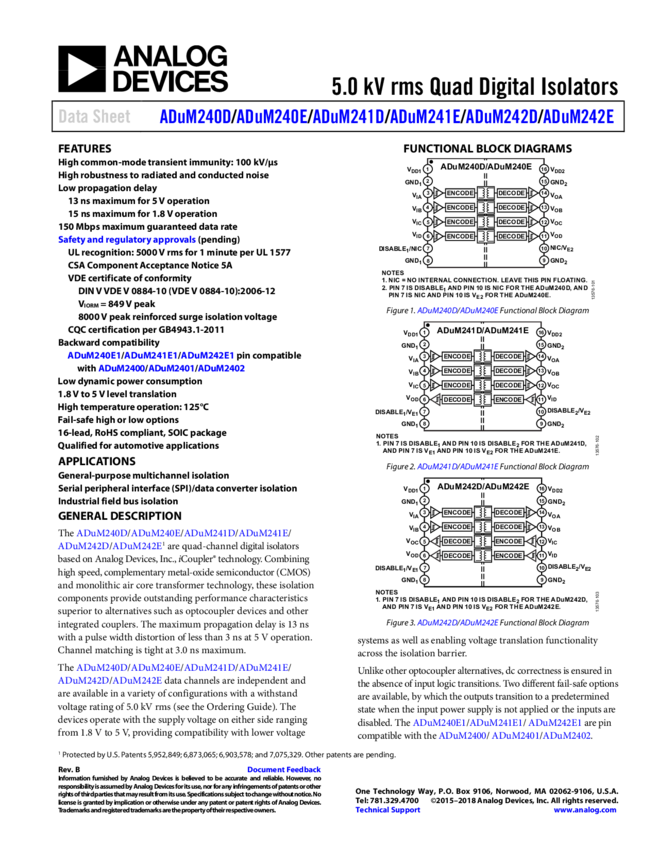 ADuM240D, ADuM240E, ADuM241E, ADuM242E, ADuM242D