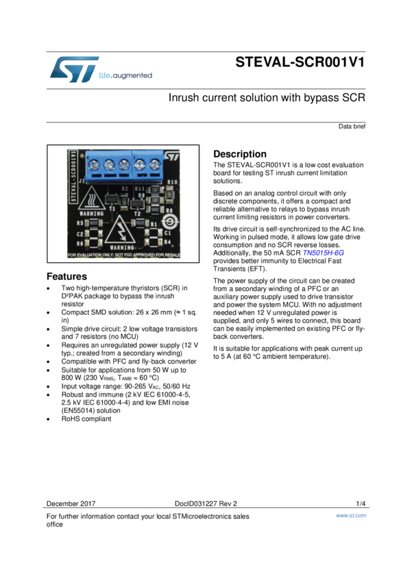 STEVAL-SCR001V1 Inrush current solution with bypass SCR