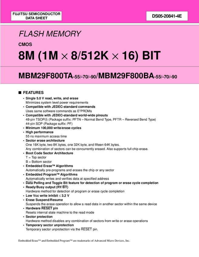 MBM29F800T%28B%29A Pamięć FLASH 29F800T TSOP48 (SMD) Fujitsu 70ns