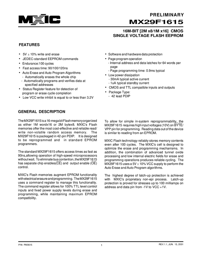 MX29F1615 Pamięć FLASH 29F1615 (Macronix) DIL42 ( z możliwością emulacji eprom'a 27C1...