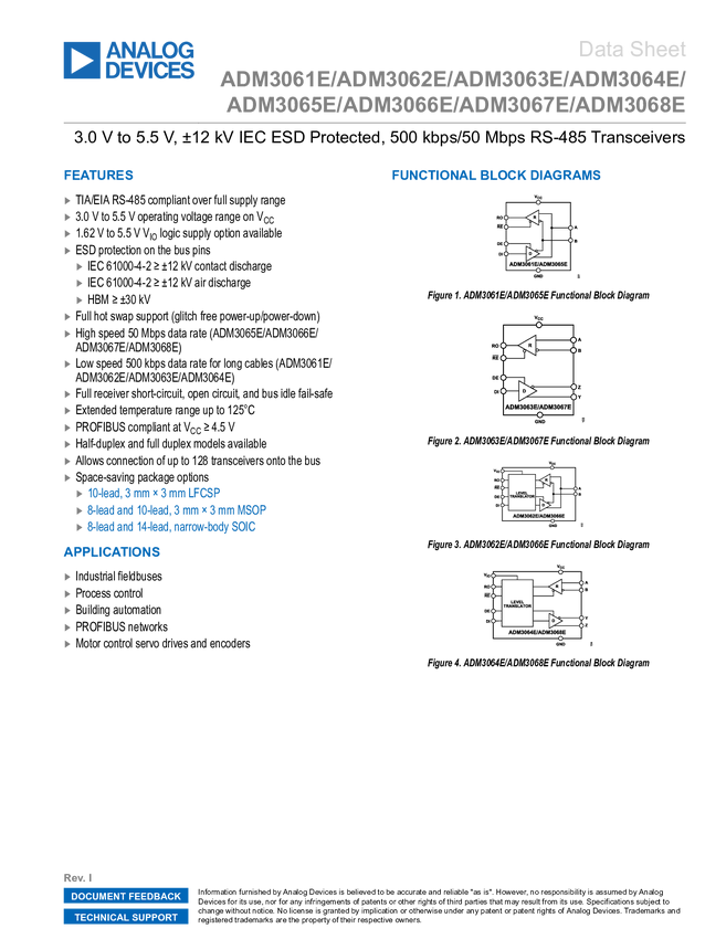ADM3067E, ADM3065E, ADM3064E, ADM3061E, ADM3062E, ADM3068E, ADM3066E