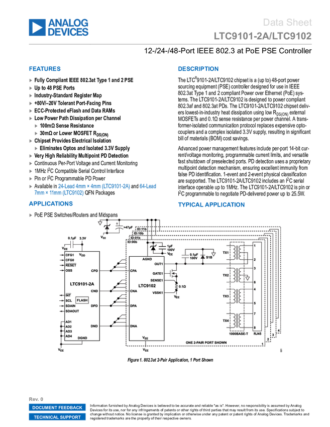 LTC9101-2A 12-/24-/48-Port IEEE 802.3 at PoE PSE Controller