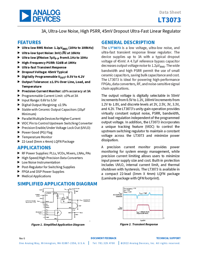 LT3073 3A, Ultra-Low Noise, High PSRR, 45mV Dropout Ultra-Fast Linear Regulator