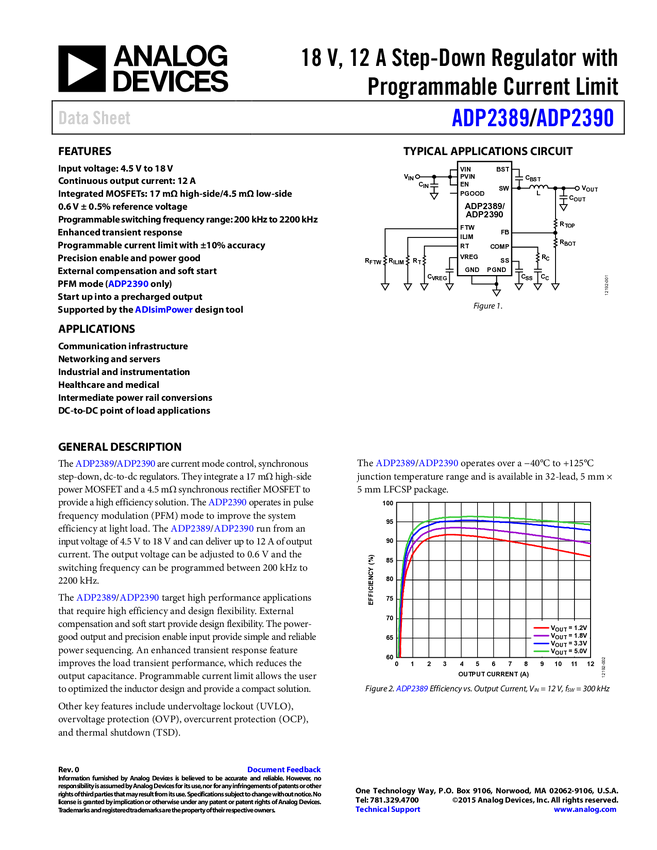 ADP2390 18 V, 12 A Step-Down Regulator with Programmable Current Limit and PFM