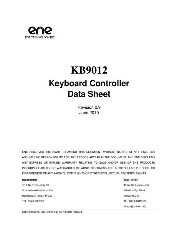 KB9012 KBC (KeyBoard Controller) NPCE288 (nuvoton) LQFP128