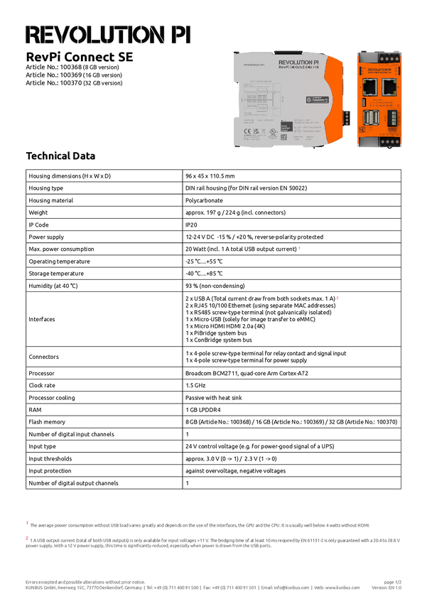 PR100369 Moduł rozszerzeń PLC Revolution Pi by Kunbus RevPi Connect SE 16 GB PR10036...
