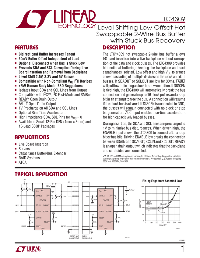LTC4309 Level Shifting Low Offset Hot Swappable 2-Wire Bus Buffer with Stuck Bus Re...