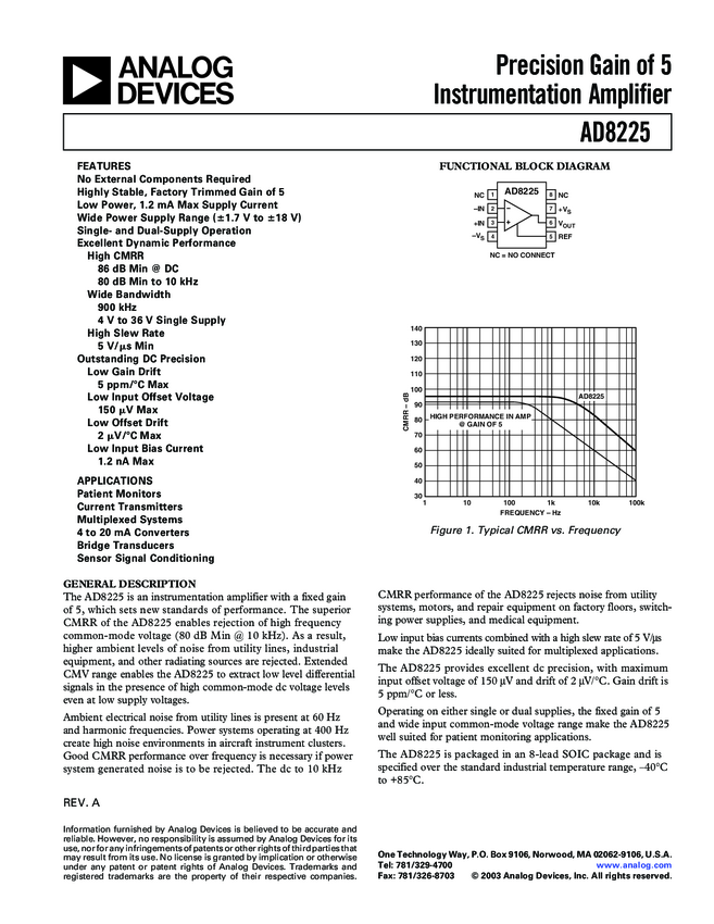 AD8225 Precision Gain of 5 Instrumentation Amplifier