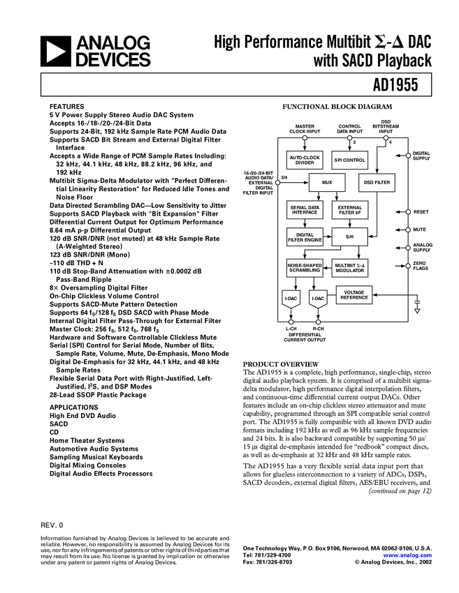 AD1955 High Performance, Multibit Sigma-Delta DAC with SACD Playback