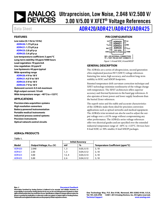 ADR420 Ultraprecision, Low Noise, 2.048 V XFET Voltage Reference