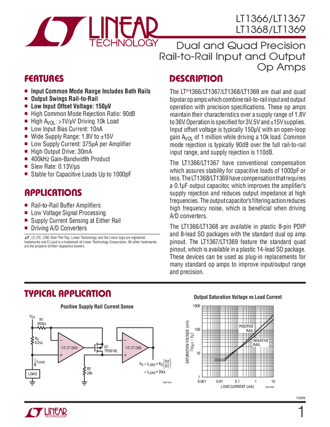 LT1366 Quad Precision Rail-to-Rail Input and Output Op Amps