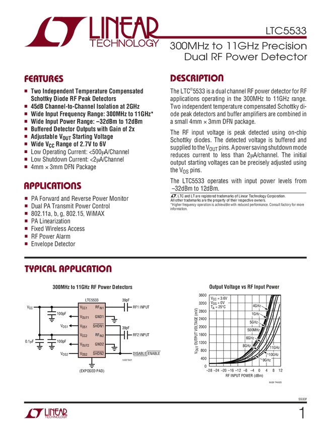 LTC5533 300MHz to 11GHz Precision Dual RF Power Detector