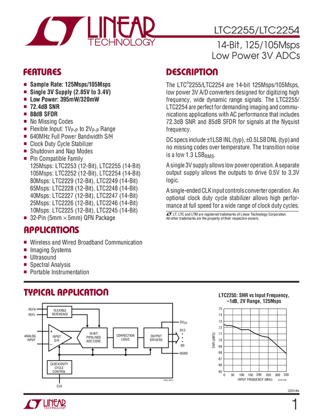 LTC2254 14-Bit, 105Msps Low Power 3V ADCs