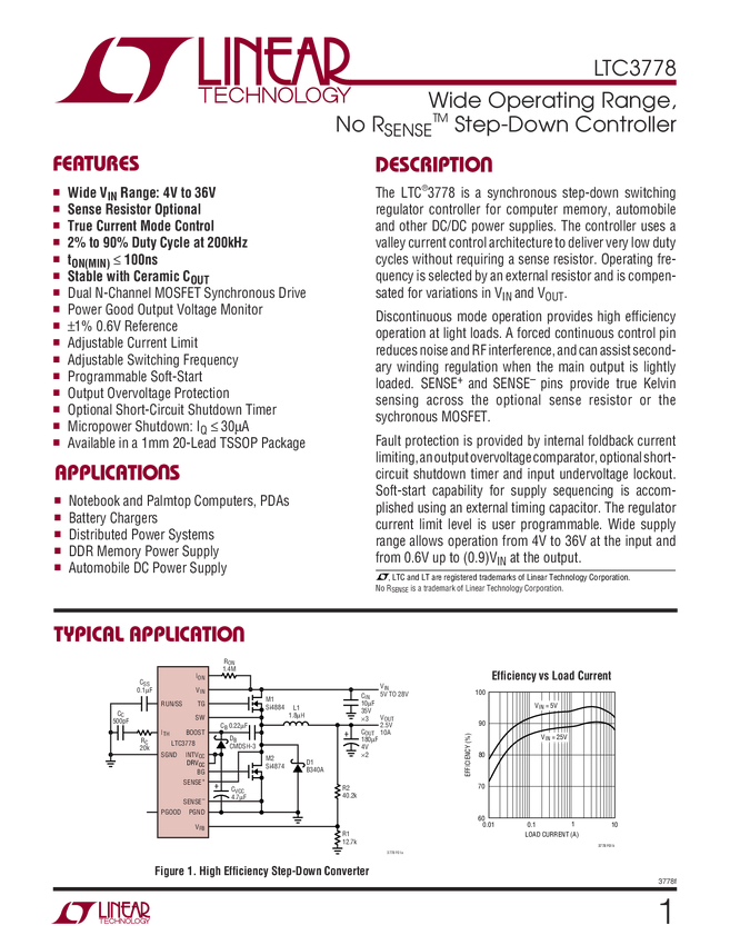 LTC3778 Wide Operating Range, No R Step-Down Controller