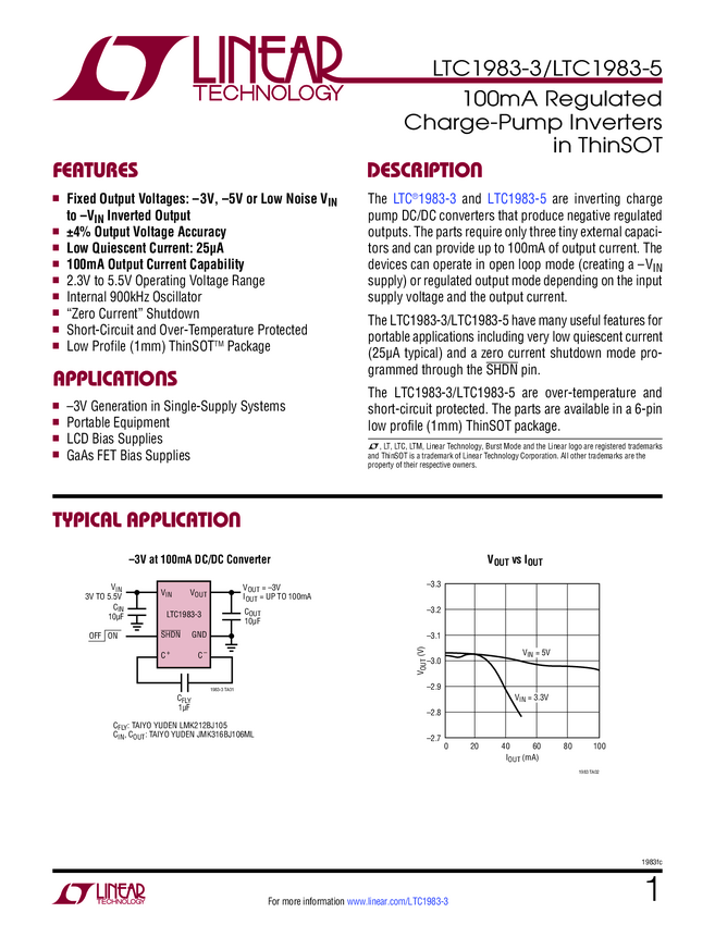 LTC1983 100mA Regulated Charge-Pump Inverters in ThinSOT