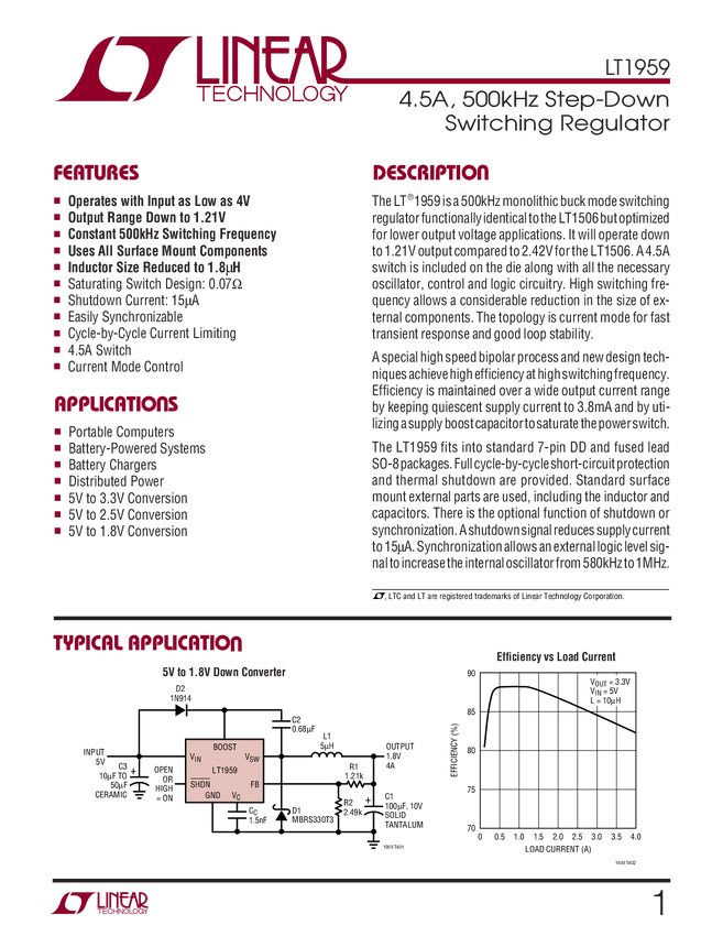 LT1959 4.5A, 500kHz Step-Down Switching Regulator