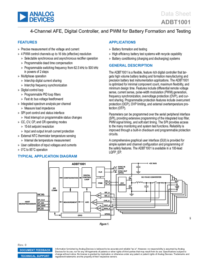 ADBT1001 4-Channel AFE, Digital Controller, and PWM for Battery Formation and Testin...