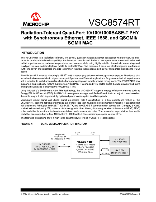 VSC8574RT: Radiation-Tolerant Quad-Port 10/100/1000BASE-T PHY with Synchronous Ethernet, IEEE 1588, and QSGMII/SGMII MAC Data Sheet