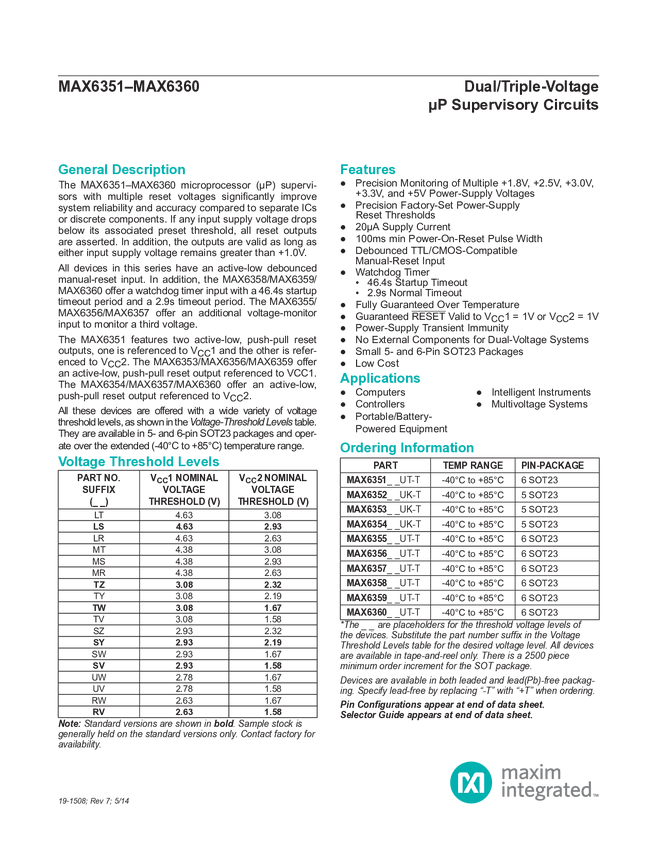 MAX6359, MAX6356, MAX6360, MAX6357, MAX6354, MAX6355, MAX6352, MAX6358, MAX6353
