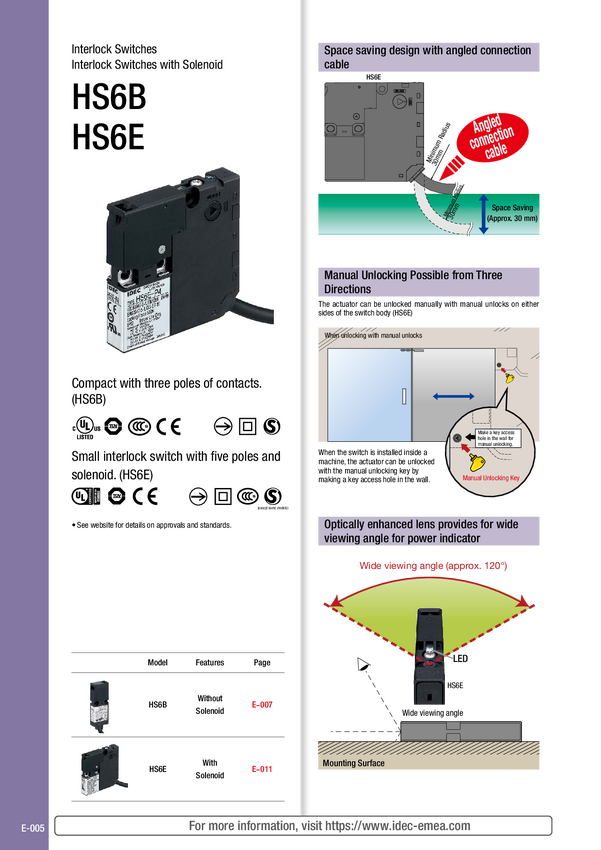 Idec HS6B-12B05 Wyłącznik bezpiecznikowy HS6B-12B05, 250 V, 125 V, 30 V, 2.5 A, IP67, 1 szt.