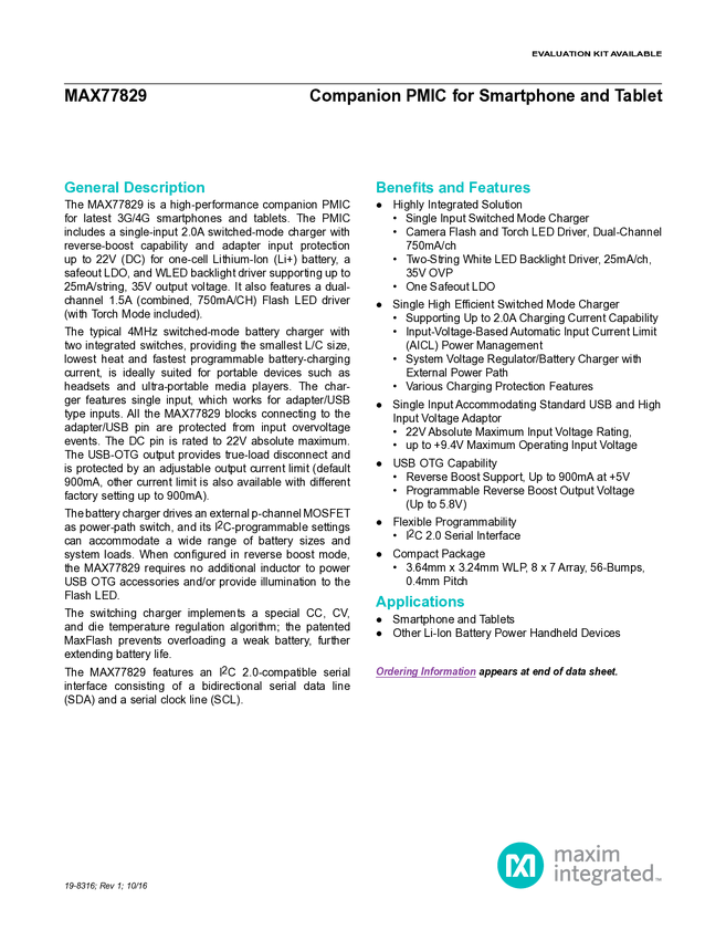 MAX77829 Companion PMIC for Smartphone and Tablet