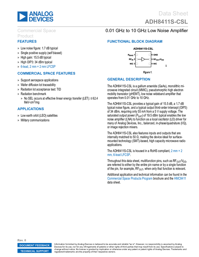 ADH8411S 0.01 GHz to 10 GHz Low Noise Amplifier