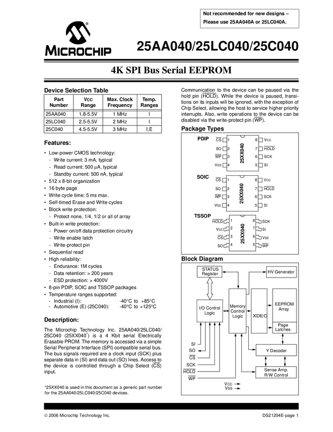 25LC040 Pamięć szeregowa EEPROM SPI 4k 25LC040 SO8 (SMD) Microchip (zam.95040/25C0...