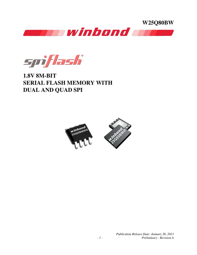 W25Q80BW Pamięć Serial Flash 8-Mbit (1MB) SPI 25Q80 Winbond SO8 (SMD) 1,8V