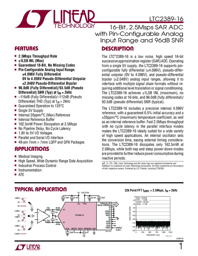 LTC2389-16 16-Bit, 2.5Msps SAR ADC with Pin-Configurable Analog Input Range and 96dB S...