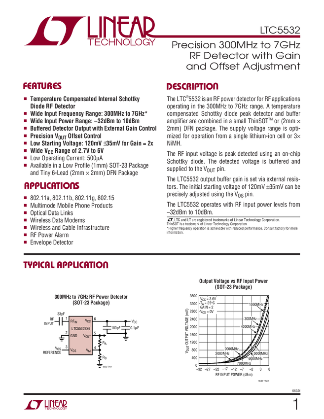 LTC5532 Precision 300MHz to 7GHz RF Detector with Gain and Offset Adjustment