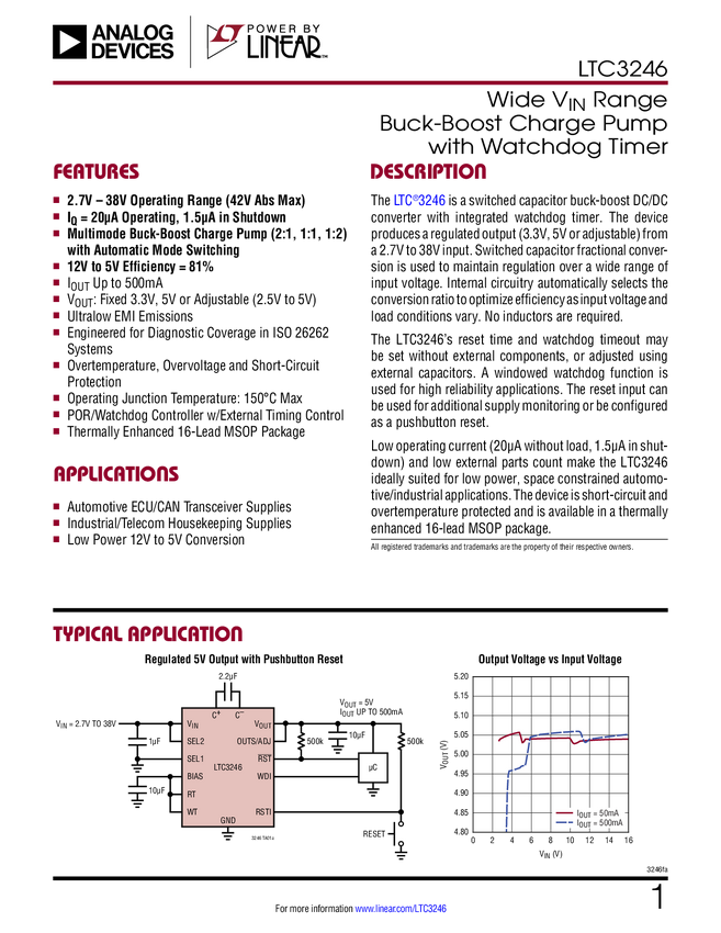 LTC3246 Wide VRange Buck-Boost Charge Pump with Watchdog Timer