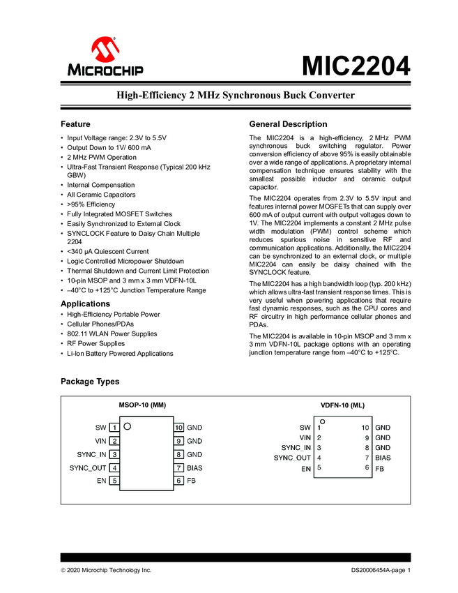 MIC2204 - High-Efficiency 2MHz Synchronous Buck Converter