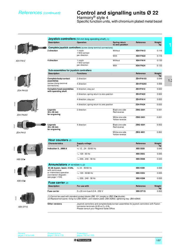 JOYSTICK ZD4PA12 XI, JOYSTICK XD4PA ZD-PA103, JOYSTICK ZD4PA14 YX, JOYSTICK ZD4PA24 YX