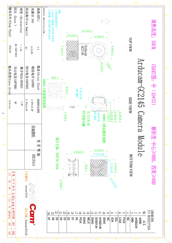TPX00216 2MP GC2145 Color DVP Camera Module for Arduino GIGA R1 WiFi Board