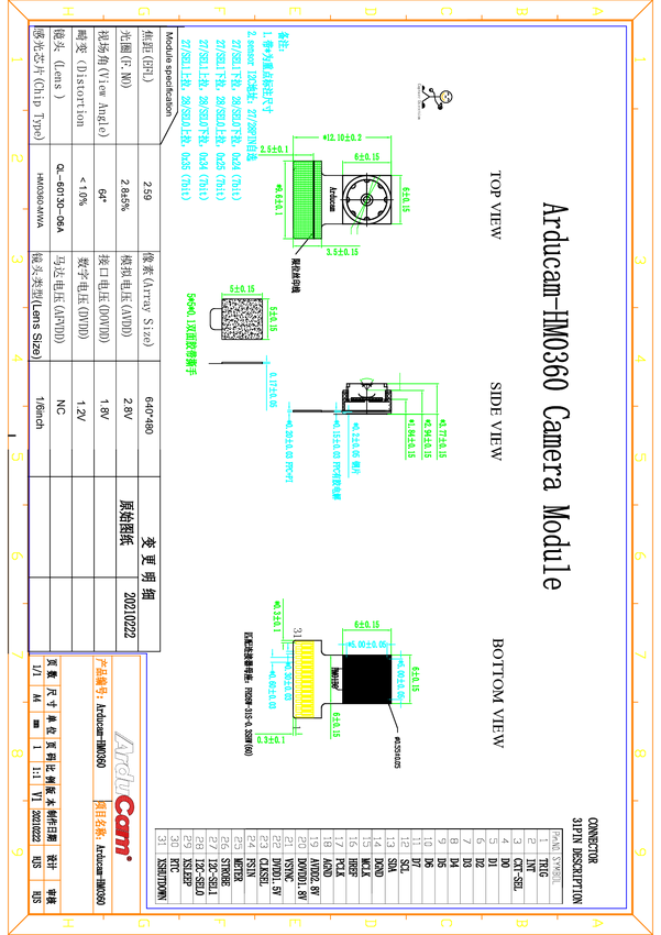 TPX00215 HM0360 VGA Monochrome DVP Camera Module for Arduino GIGA R1 WiFi Board