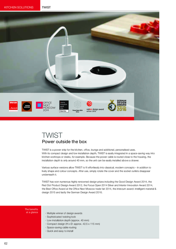 - Gniazdko kuchenne TWIST 1S 2P 1x gn.UTE z bolc.uz. 2x ramka mod.danych zas. 0,2m, Gniazdko kuchenne TWIST 2S 2x gn.UTE zas. 2,0m czarny (931.102), TWIST 2S zestaw gniazd. 2x gn.UTE z bolc.uz. zasil. 2,0m, (nie zmont. wtycz.), b, TWIST 2S zestaw gniazd. 2x gn.Schuko zasil. 2,0m, kolor stal. (nie zmont. wtycz.