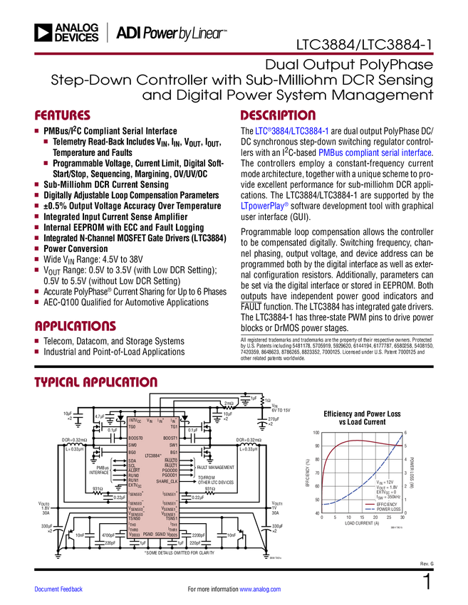 LTC3884 LTC3884-1 Dual Output PolyPhase Step-Down Controller with Sub-Milliohm DCR Sensing an...