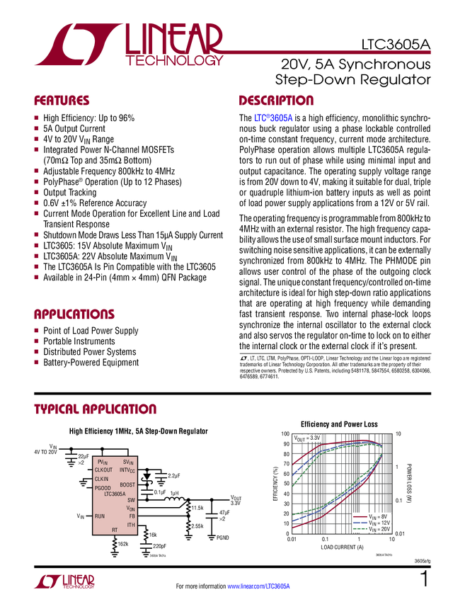 LTC3605A 20V, 5A Synchronous Step-Down Regulator