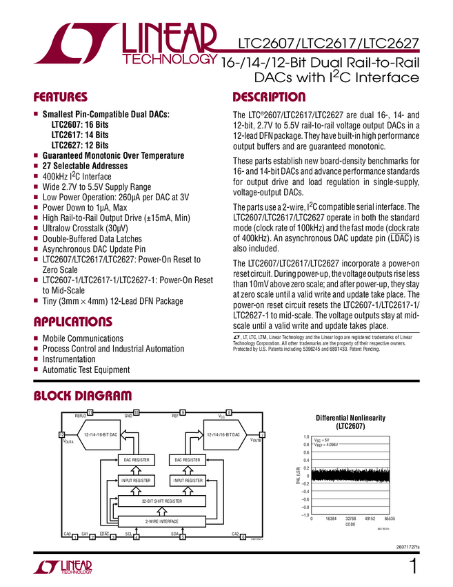 LTC2607 12-Bit Dual Rail-to-Rail with I²C Interface
