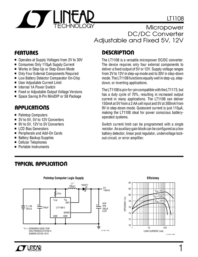LT1108 Micropower DC/DC Converter Adjustable and Fixed 5V, 12V