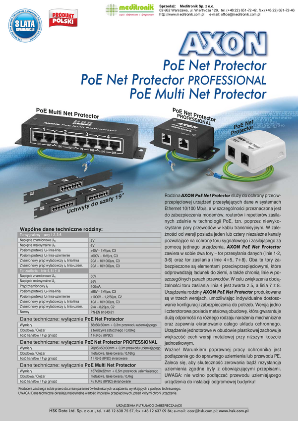 AXON POE NET PROTECTOR, AXON POE NET PROTECTOR PR, AXON AIR NET PROTECTOR PR