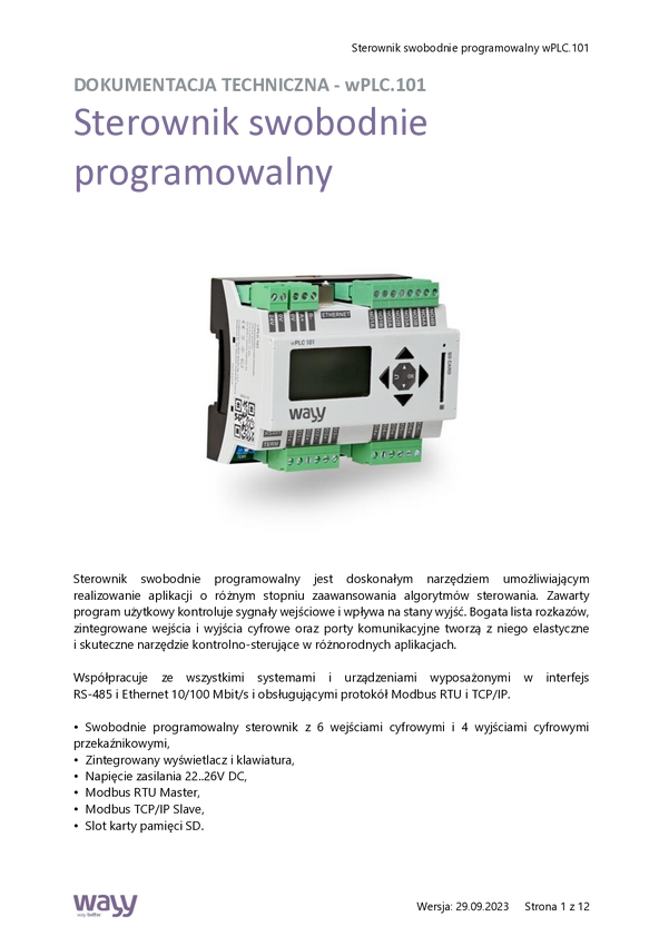 wPLC.101 Sterownik swobodnie programowalny wPLC.101 (6xDI, 4xDO). Sterownik PLC