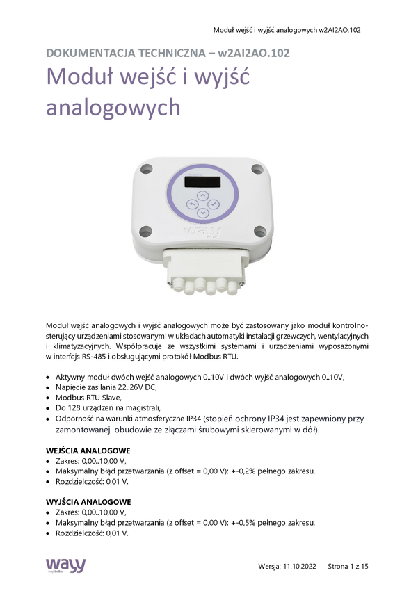 Moduł wejść i wyjść analogowych w2AI2AO.102 (złącze śrubowe)