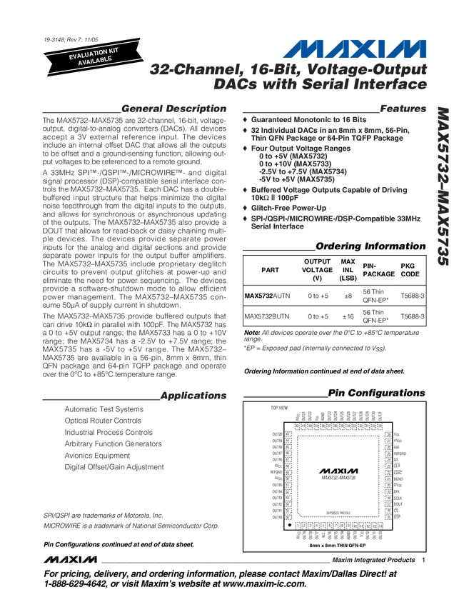 MAX5735 32-Channel, 16-Bit, Voltage-Output DACs with Serial Interface