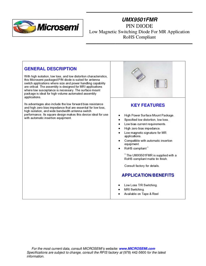 UMX9501FMR-ULowMag-MELF-MRI-PIN Low Magnetic Switching Diode For MRI