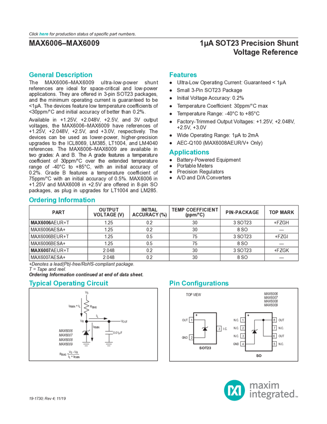 MAX6006B, MAX6007A, MAX6006A, MAX6009A, MAX6007B, MAX6009B, MAX6008A