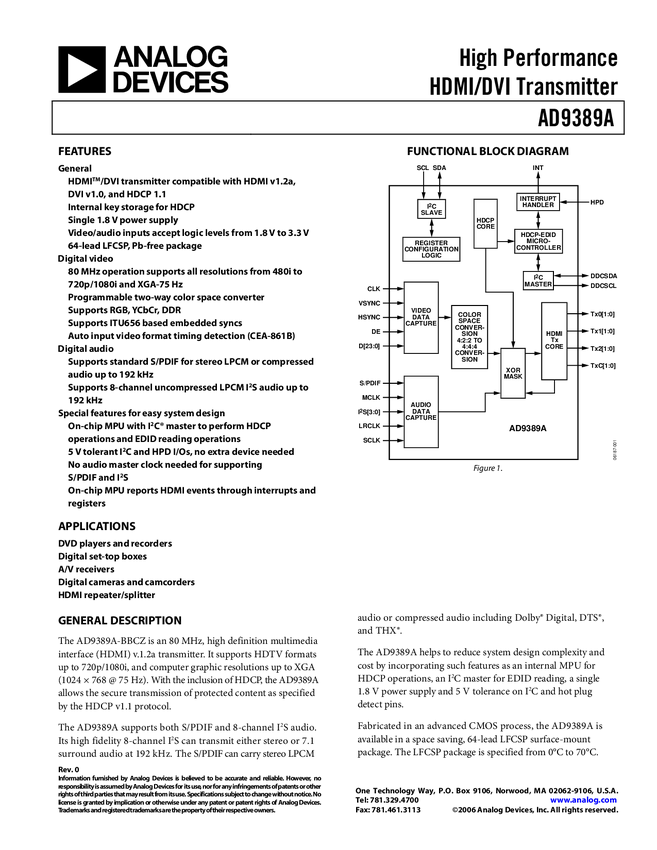 AD9389A High Performance HDMI/DVI Transmitter