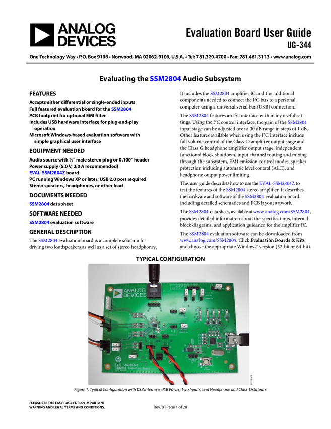 SSM2804 Audio Subsystem with Class-D Speaker and Capless Headphone Driver